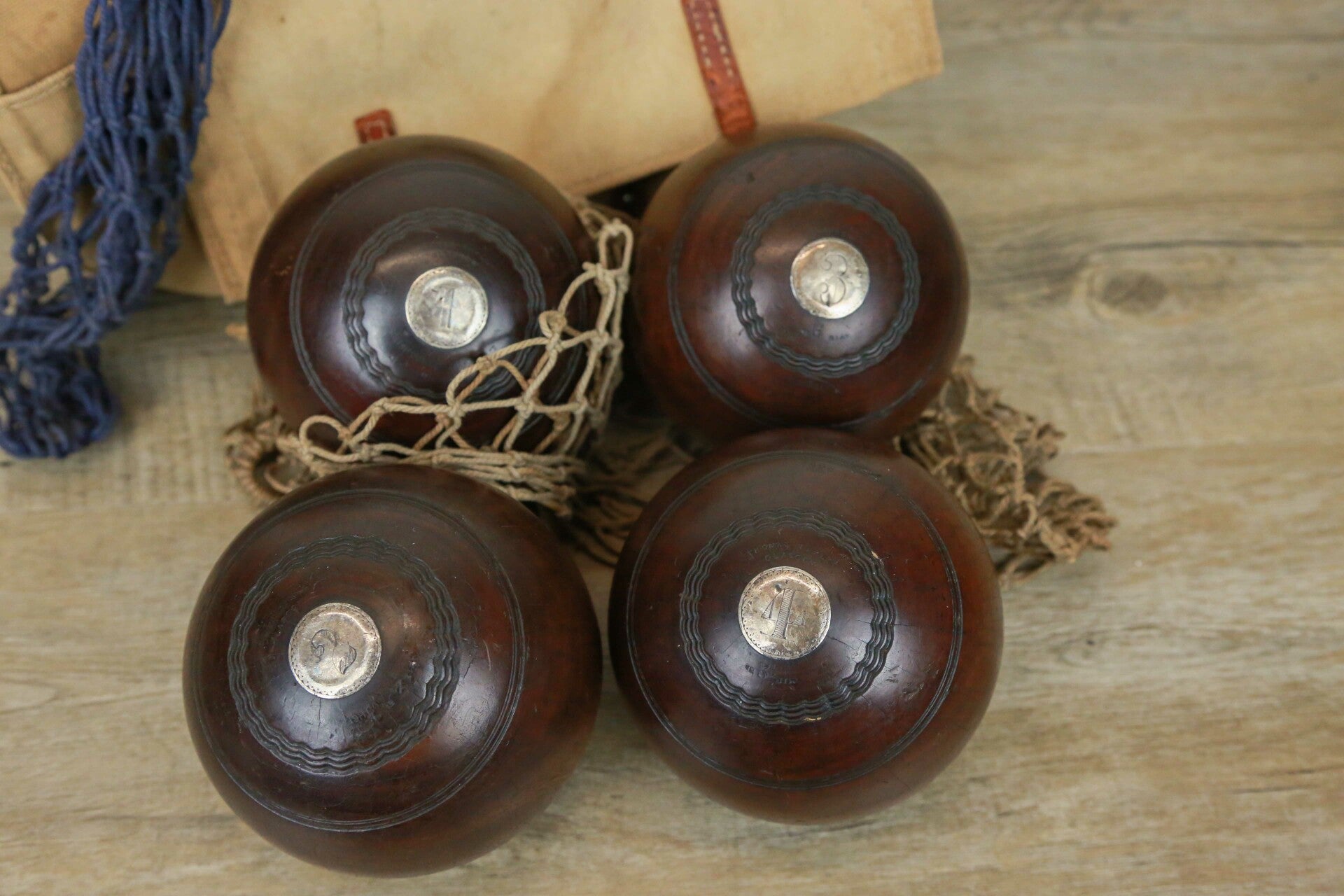 Mooie oude bowls ballen met zilver