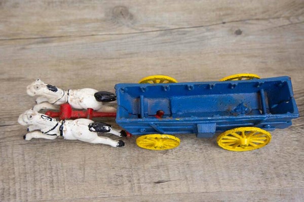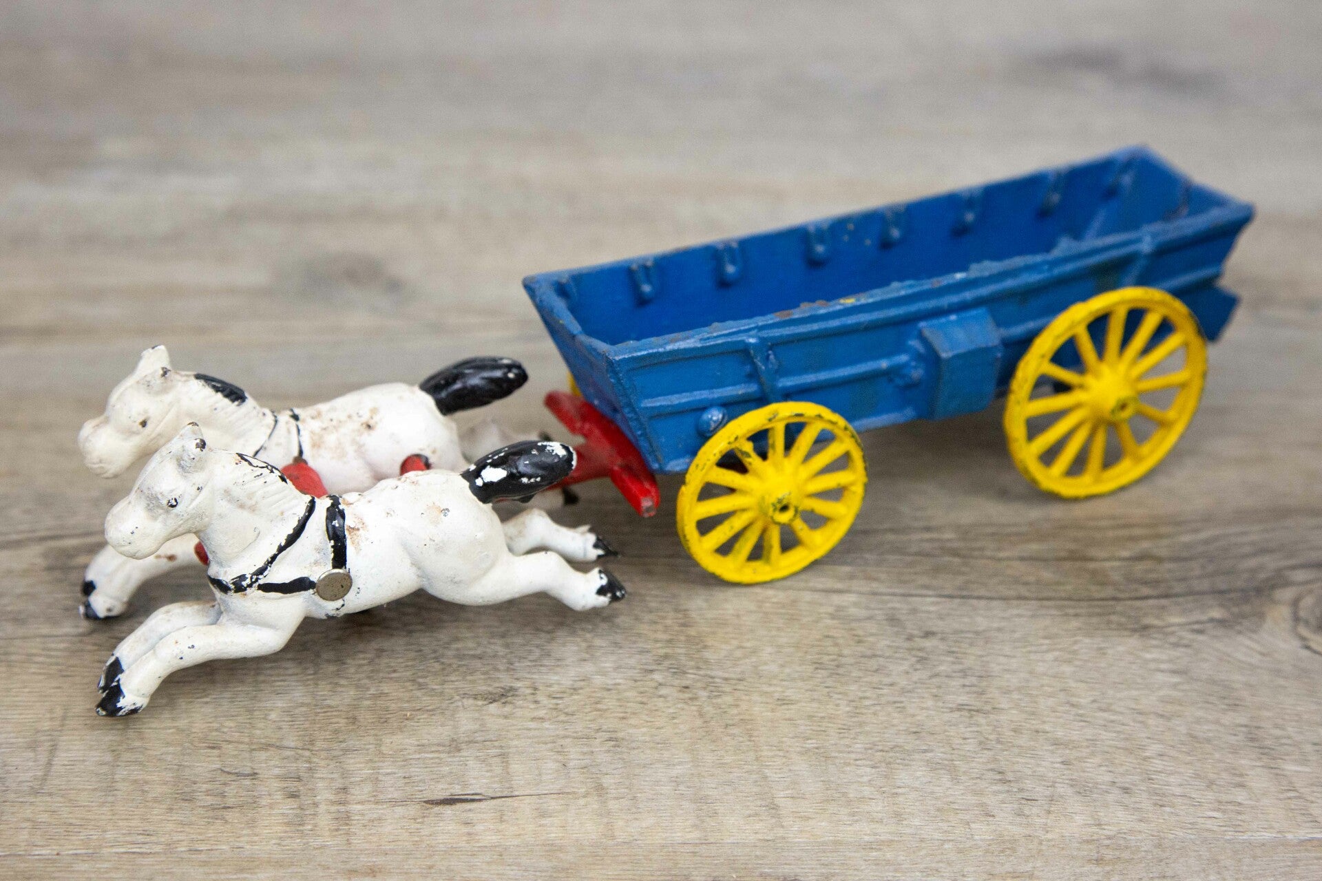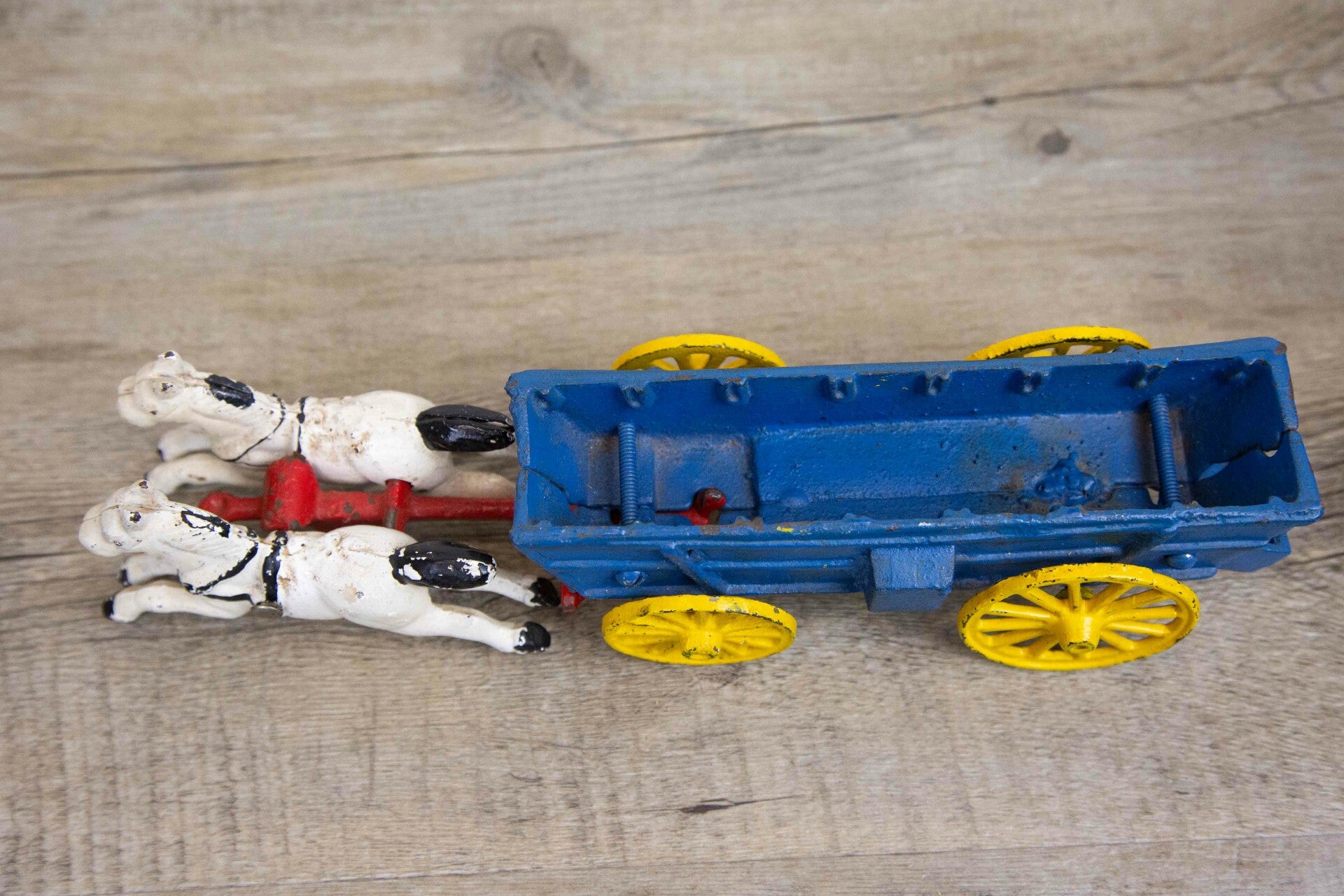 Mooie oude gietijzeren paarden wagen van Hubley Toys uit Kenton.