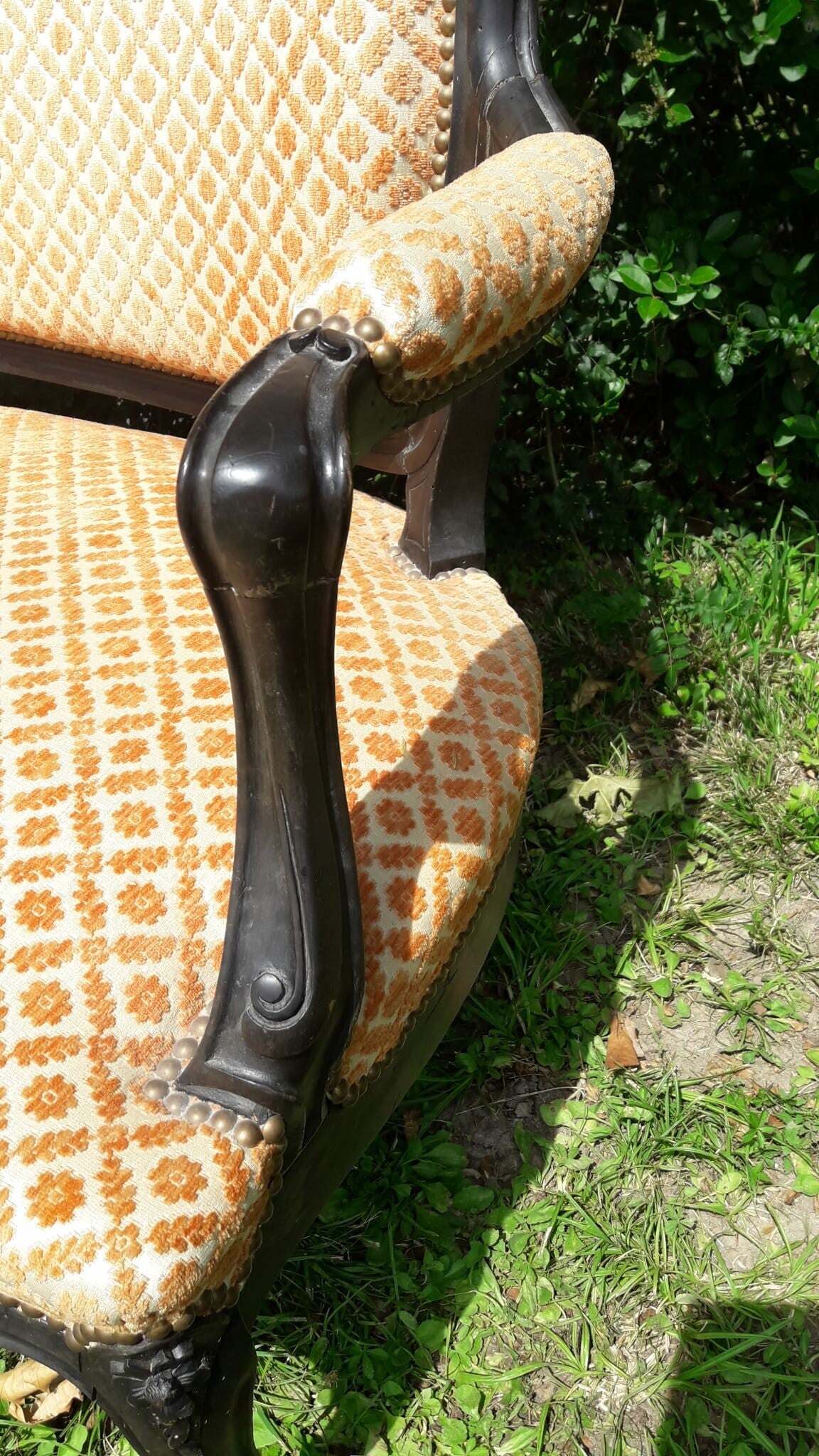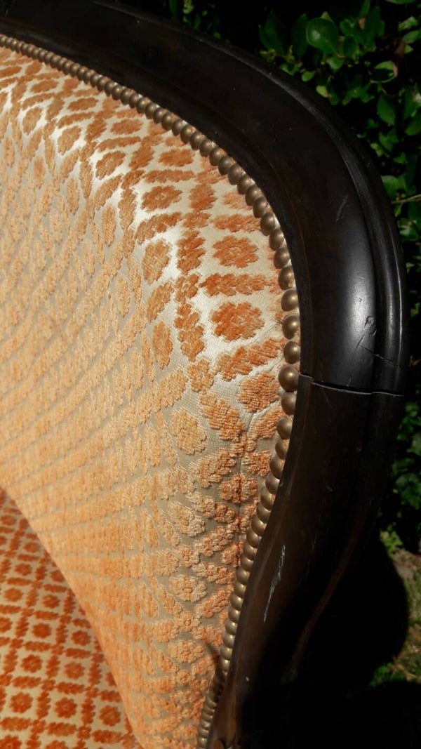 Kwaliteit stof uitmuntend oranje/ cerise kleur, met originele casters van koper. Een aanwinst voor de liefhebber.
