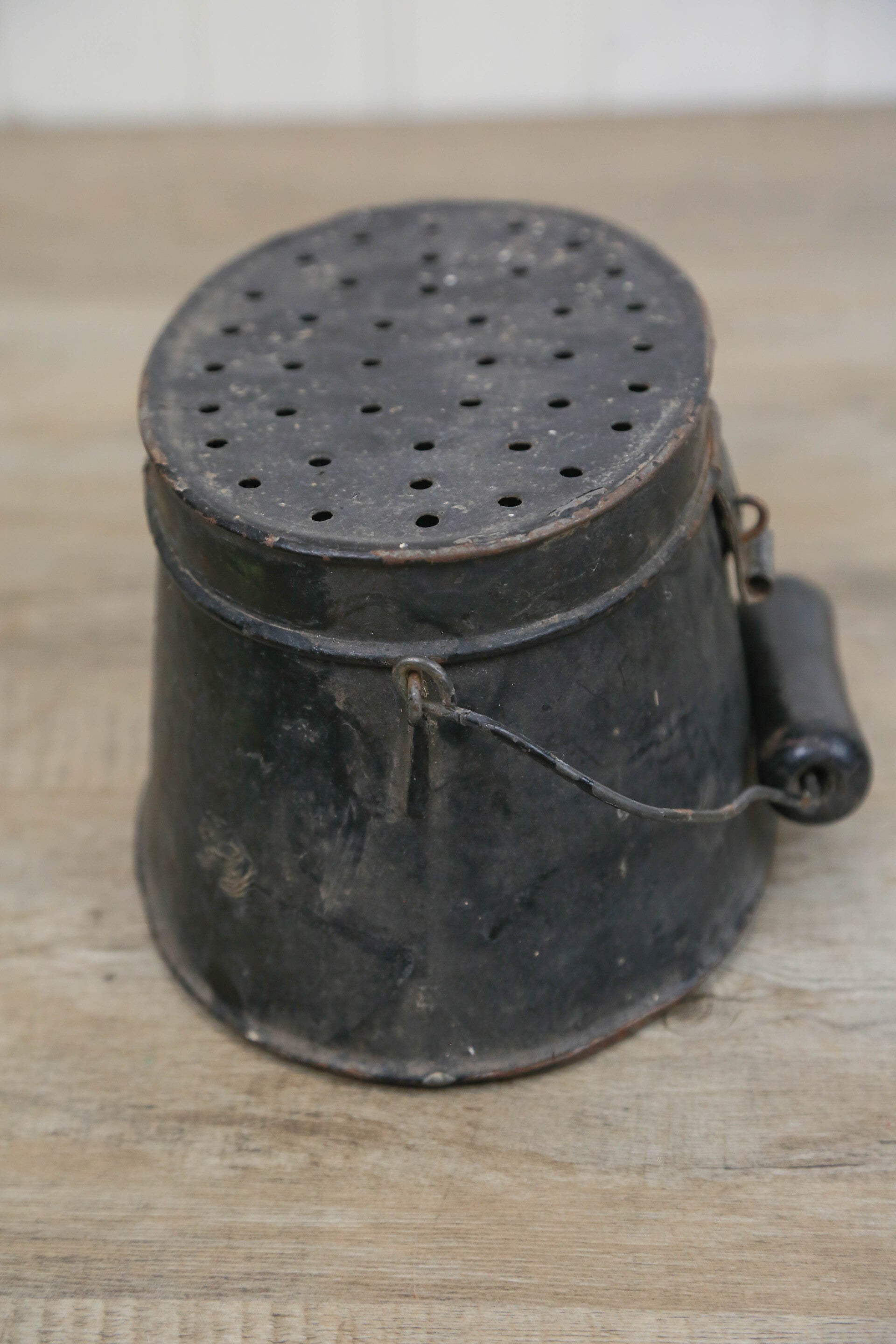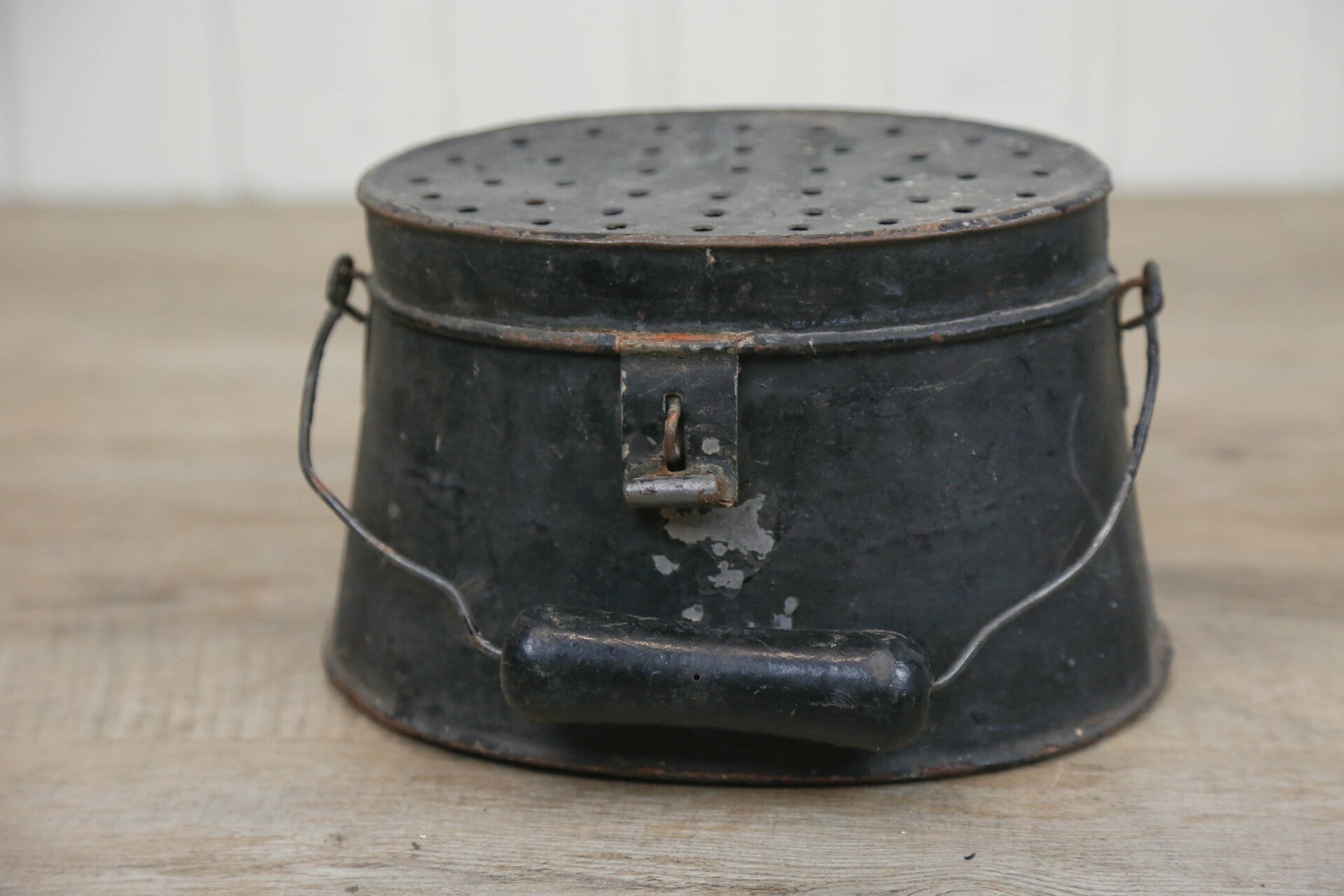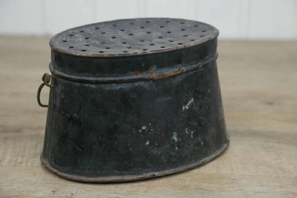 Brocante aasketeltje om je aasvisjes te bewaren. Pure nostalgie uit circa 1920