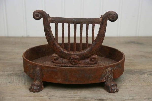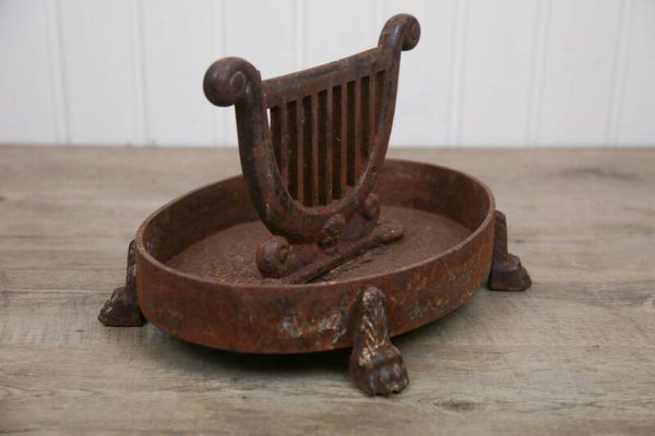 Mooie gepatineerde gietijzeren Laarzenschraper in de vorm van een harp.